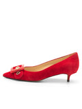 Butter Shoes Women’s Diana Pointed Toe Kitten Heel in Red Suede